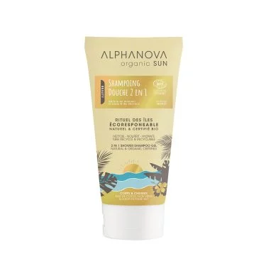 Une formule douce sans sulfate, à base d'eau de coco bio et enrichie en extrait de fleur de tiaré bio de Polynésie et en aloe vera bio. Ce shampooing douche nettoie en douceur la peau et les cheveux et élimine les résidus de sel, de chlore, de sable et de crème solaire… Même les filtres les plus résistants sont éliminés ! Ce cocktail d'ingrédients naturels exotiques hydrate la peau et la préserve de sa souplesse, tout en facilitant le démêlage. Votre peau et vos cheveux sont enveloppés d'un parfum solaire addictif aux notes de monoï. Tube en plastique recyclé et recyclable.