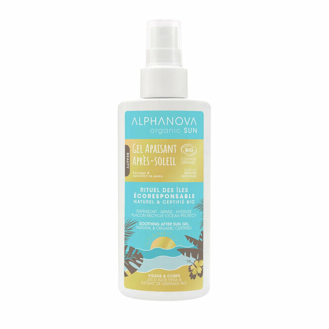 Ce gel après-soleil est naturel (99,1 % d'ingrédients) et certifié BIO par ECOCERT. Ce soin solaire transparent apaise les sensations de brûlure après une exposition prolongée au soleil. Sa formule est sans parabène, non collante et non grasse.