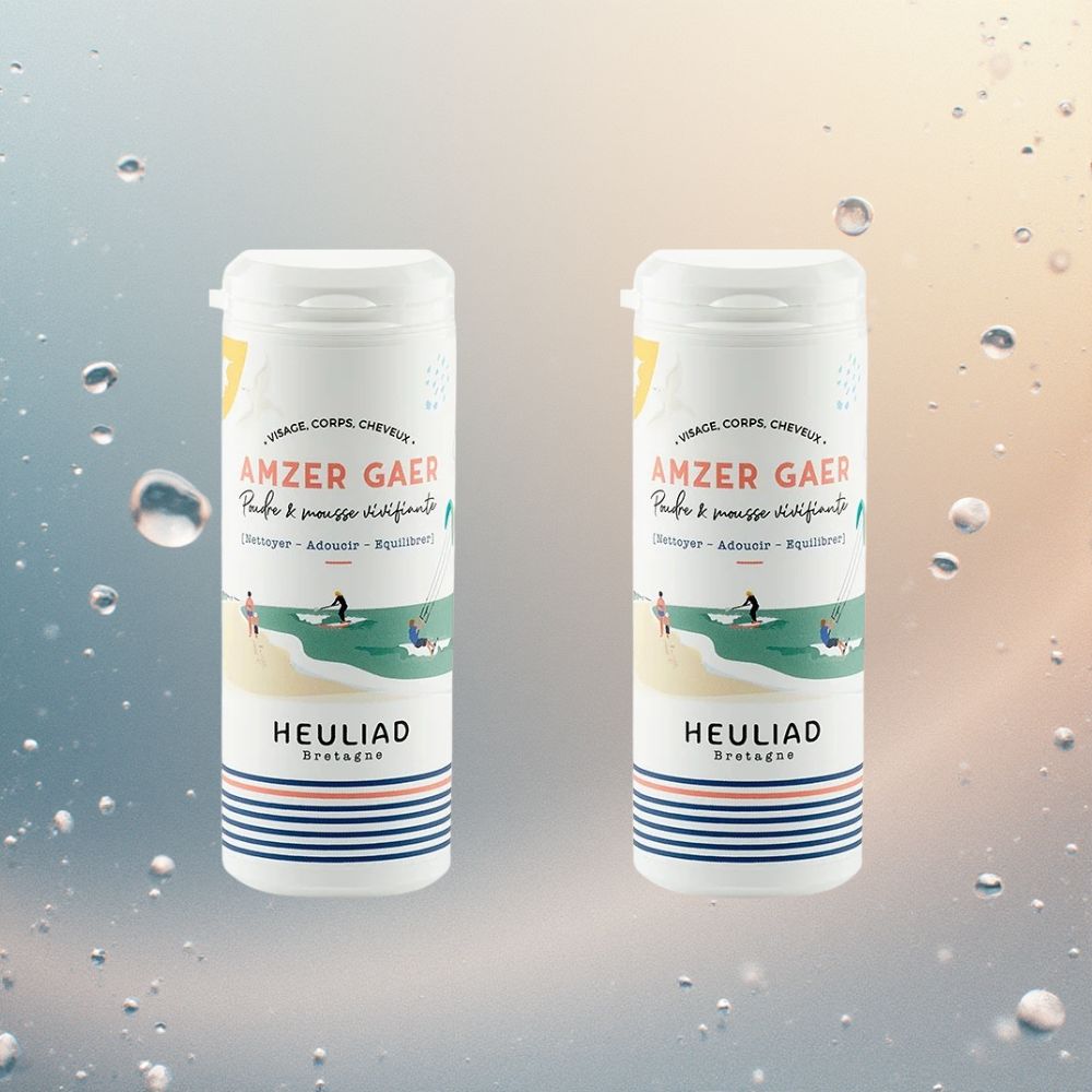 Saupoudrez la poudre « Amzer gaer » sur la paume de vos mains mouillées. Frottez vos mains pour faire mousser la poudre et appliquez-la sur les zones à nettoyer (visage, corps ou cheveux).