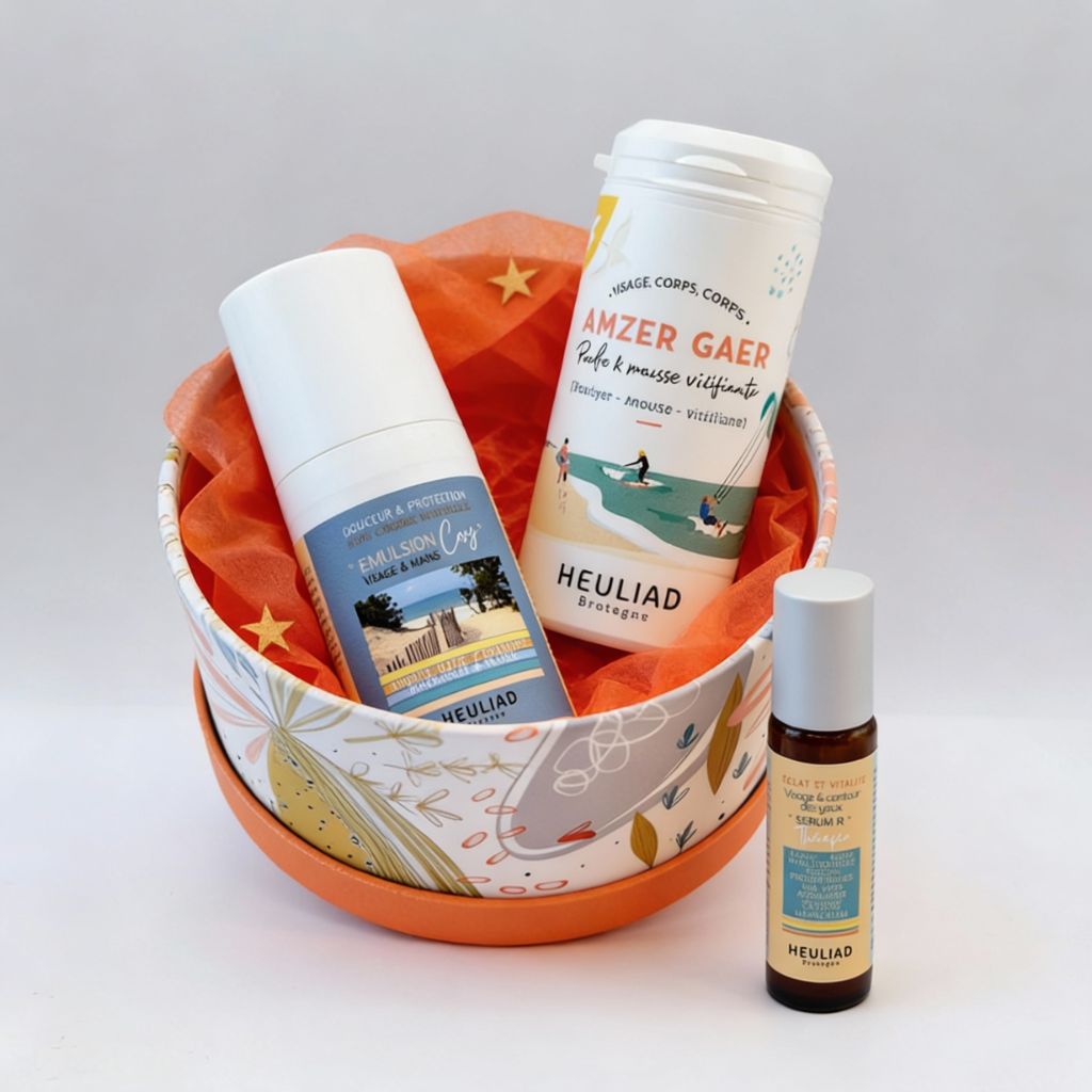 Des cosmétiques bretons à s'offrir ou à offrir autour de soi, dans une jolie boite kraft pour faire découvrir autour de soi la slow beauté sélectionnée par Heuliad depuis 2010.